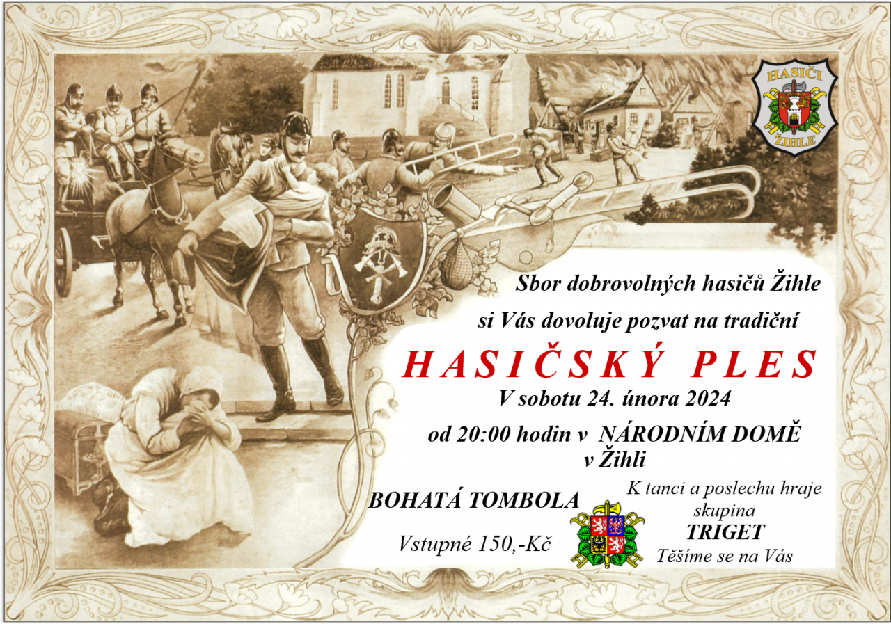 Hasičský ples v Žihli dne 24.2.2024 od 20 hod v ND Žihle